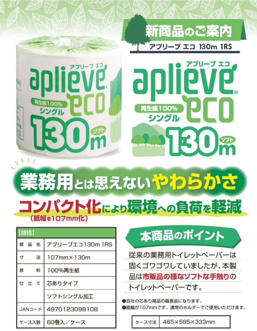 医療・介護施設用品 > 業務用トイレットペーパー・ペーパータオル・各種ホルダー > トイレットペーパー > アプリーブエコ トイレットペーパー130m 60個単位